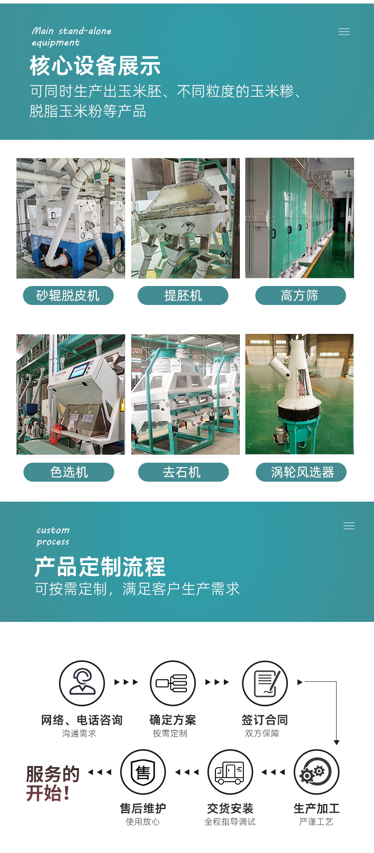 3.成品出品率:玉米糝45-55%左右;玉米粉30-25%左右;玉米皮20-30%左右;玉米糝、玉米粉總出品率70-80%(出品率可調(diào));