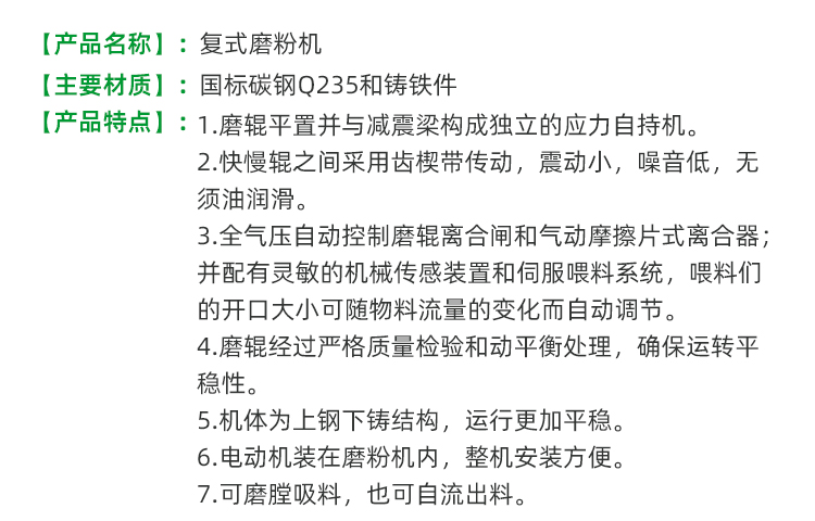 FMFQ系列復式磨粉機性能特點: