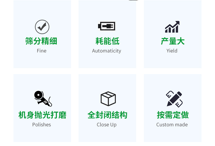 2、篩分產(chǎn)量大(滿足可以達(dá)到100kg/h-20t/h)。