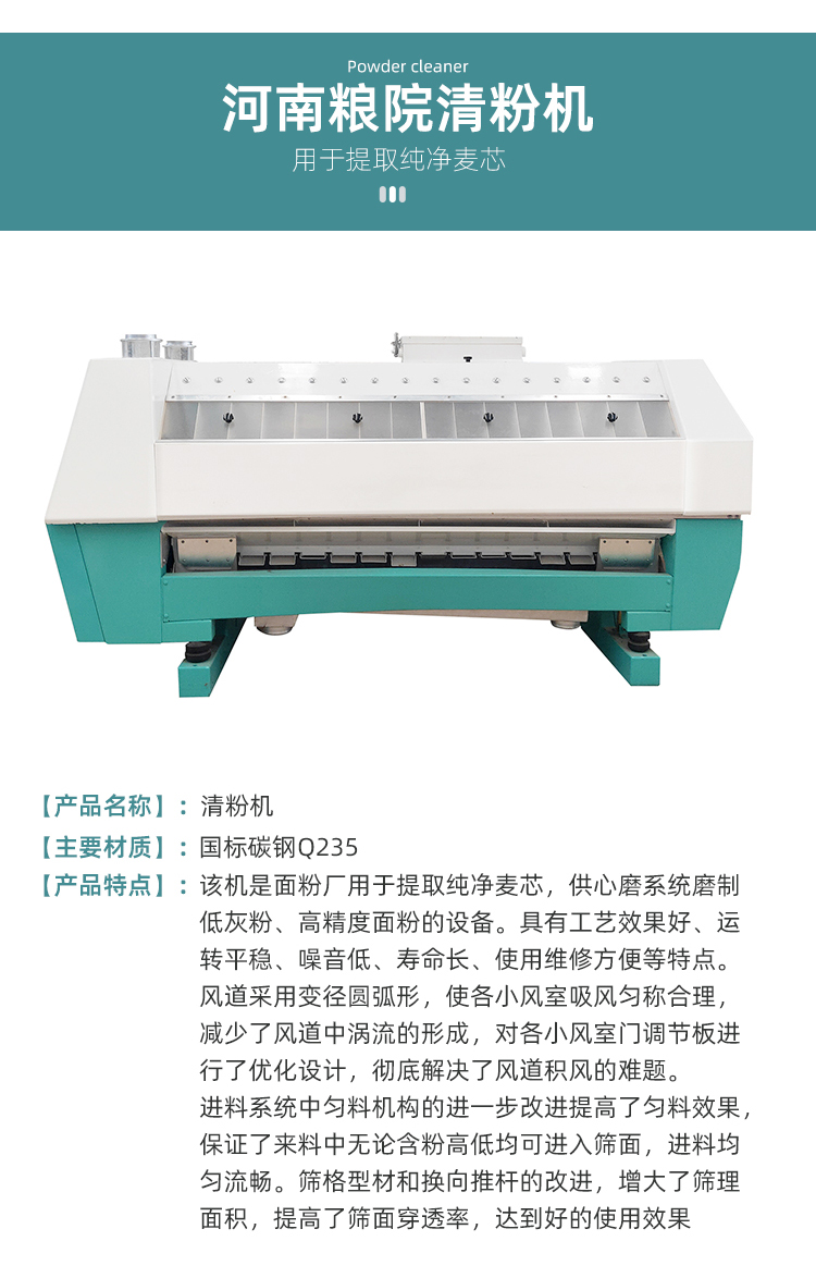 6、該系列清粉機(jī)是消化先進(jìn)的技術(shù)開發(fā)研制并經(jīng)電腦優(yōu)化定型而生產(chǎn)的新產(chǎn)品。