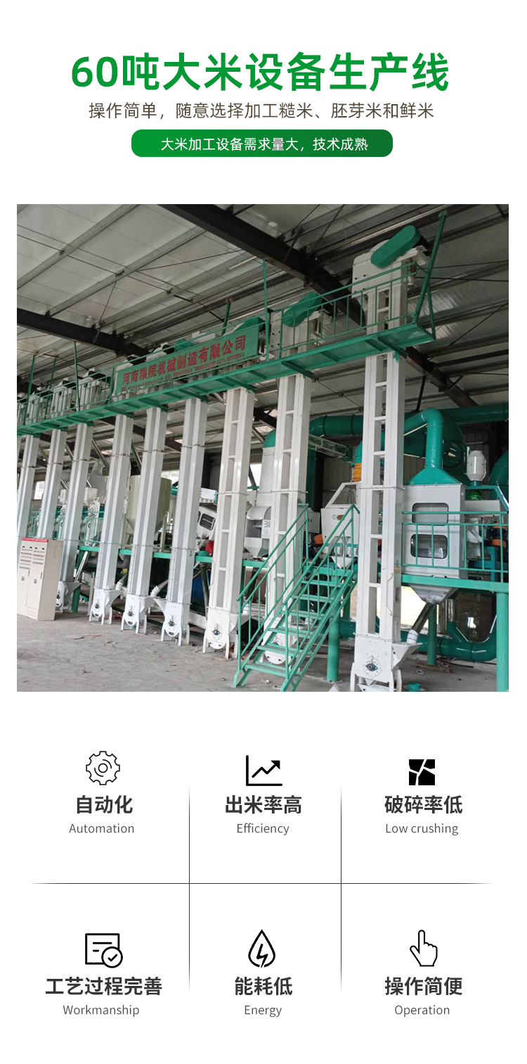 3、工藝過程完善,本成套設(shè)備從原糧清理、去石、多級脫殼、多級碾磨拋光、到大米分級裝袋、配電全部實(shí)現(xiàn)自動化連續(xù)作業(yè),工藝流暢,操作維修方便。