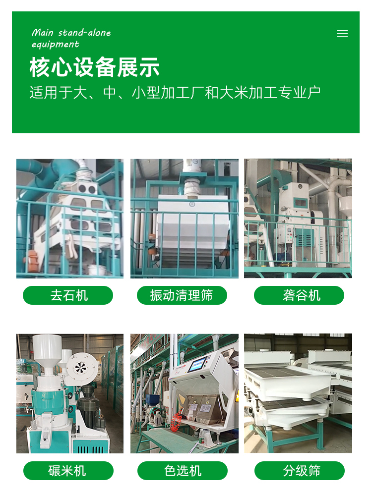 本設(shè)備廣泛適用于城鎮(zhèn)、農(nóng)村大、中、小型大米加工廠和大米加工專業(yè)戶。